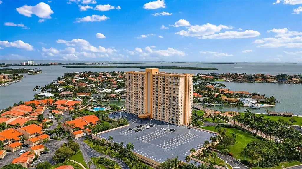 Just Reduced!! Completely redesigned and renovated luxury condo with views of Boca Ciega Bay, located in the award-winning 55+ community of Point Brittany.  This luxury condo features an open concept kitchen with a gorgeous large island which is great for entertaining and eliminates the need for dining room table and chairs.  The ceiling height cabinetry provides maximum storage space.  The designer bathroom is very large with double sinks and a two person, two separate showerheads shower.  Both the kitchen and the bathroom have quartz countertops.  The beautiful porcelain flooring is complimented by everyone who sees it.  Additional features and updates include Vinyl sliding impact door, hurricane impact windows, cabinets, floors, walls, a/c, water heater, and motorized room darkening shades in both the living room and bedroom.  You'll love morning coffee or a cool beverage in the sea breeze and enjoy bay views on the covered balcony. Bayway Isles Point Brittany has four pools, a hot tub, and a clubhouse with a catering kitchen, fitness center, library, cards and billiards rooms, a yoga studio and an arts and crafts room. The complex also offers fishing piers, tennis/pickle ball courts, shuffleboard, Electric Car charging stations, grilling areas, kayak storage and a marina with boat slips available on a 1st come basis. The condo association recently completed the required Structural Integrity Reserve Study (SIRS) as well as the required Milestone report. Nearby Isla del Sol Yacht and Country Club (private memberships available) with 18 hole championship golf course and marina. Easy access and minutes to Gulf Beaches such as St Pete Beach, Fort de Soto Park, Pass-A-Grille. Easy access to the interstate and 10 minutes to downtown St. Petersburg with many museums, shops, restaurants, theaters and nightlife. 30 minutes to Tampa International Airport.